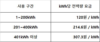 2. 전력량요금 (사용량에 따라 전기 요금이 달라짐)